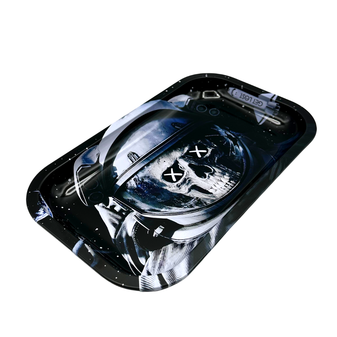 Get Lost Rolling Tray with 3D Magnetic Lid - (Astronaut Skull Face)