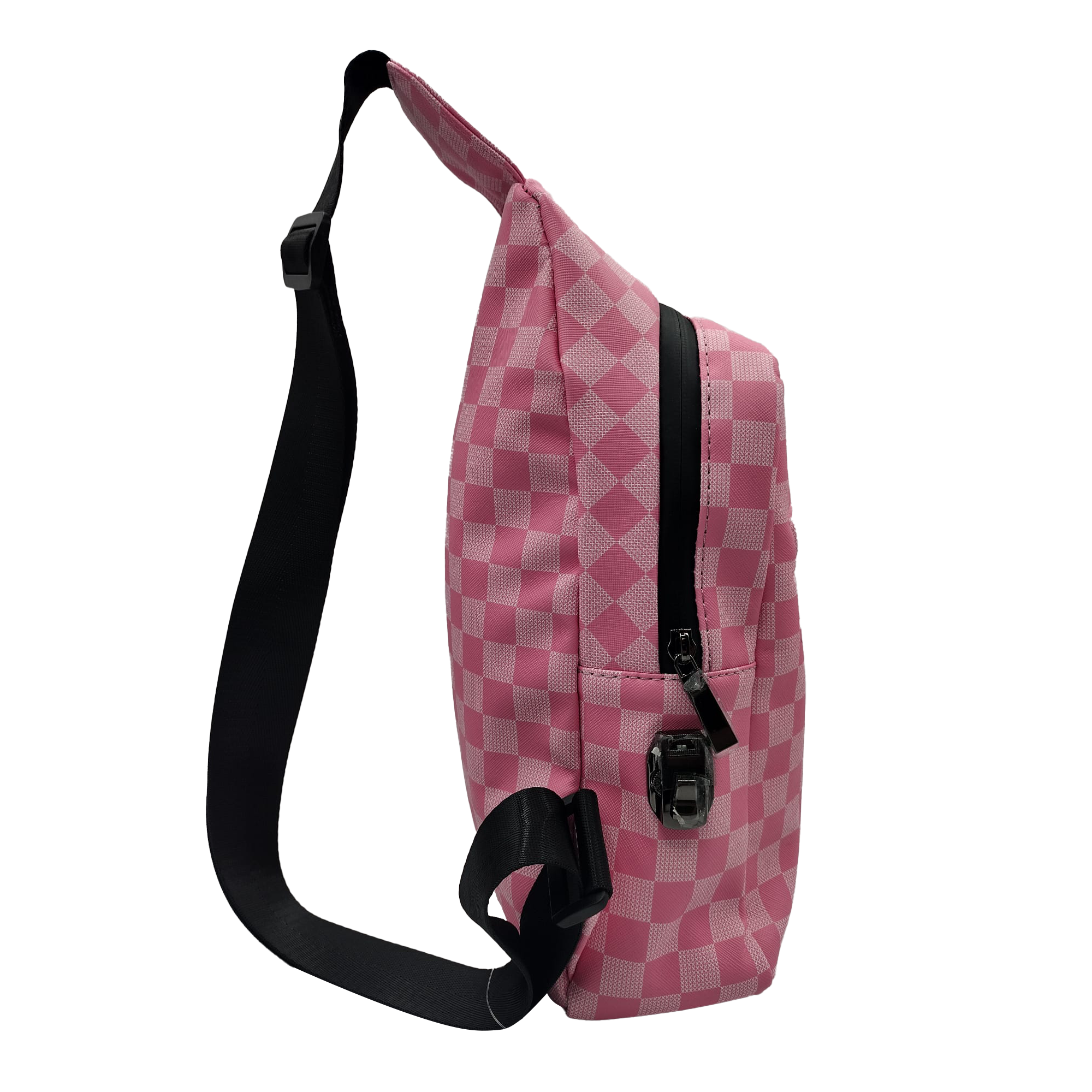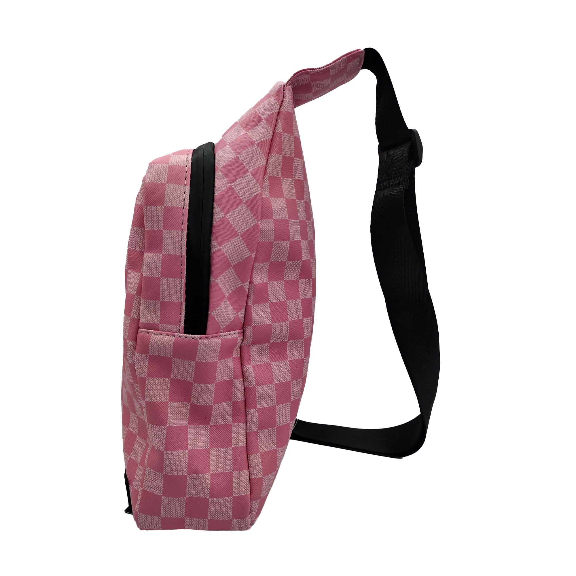 Get Lost - Premium Saffiano Leather Shoulder Bag (Pink Squares)