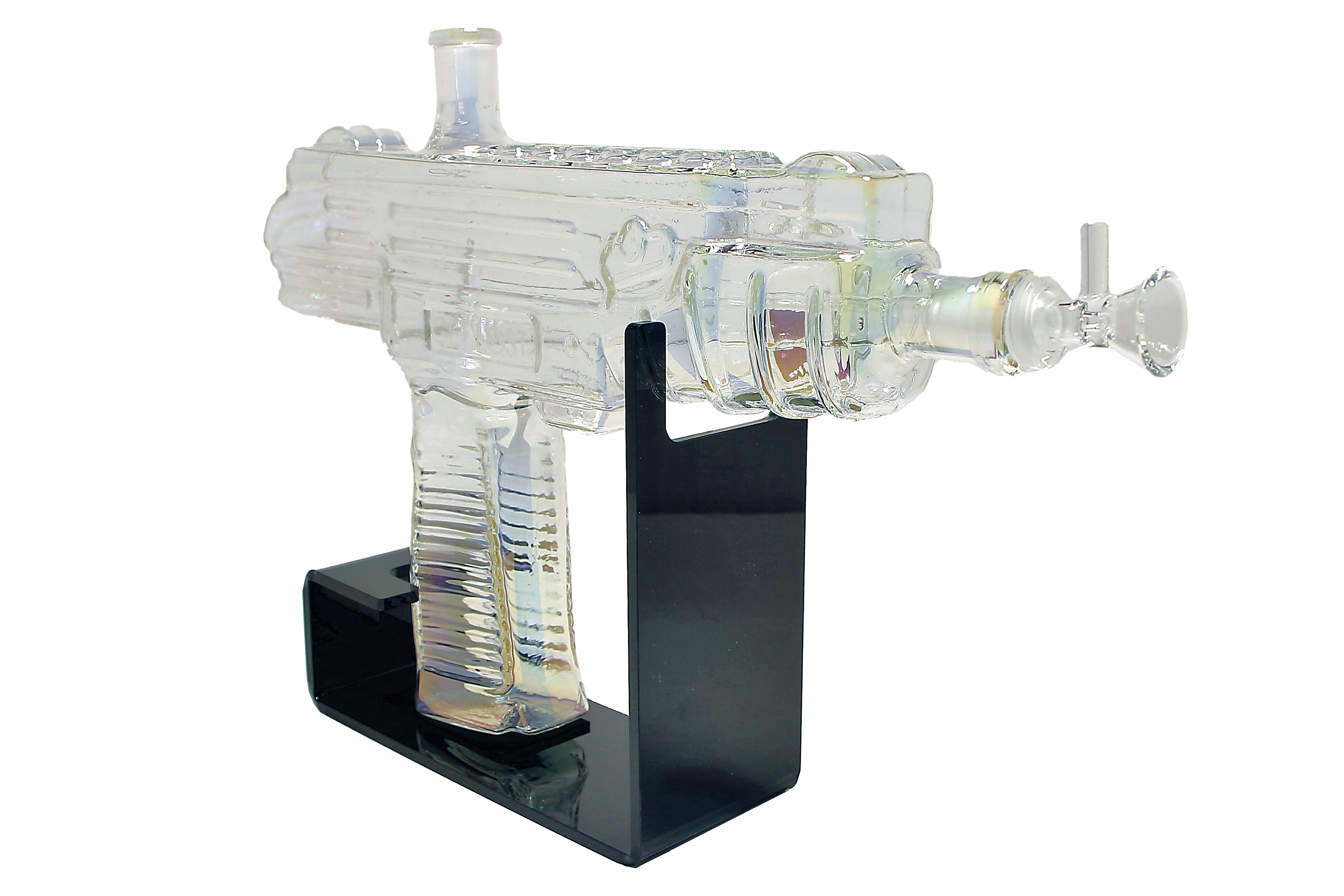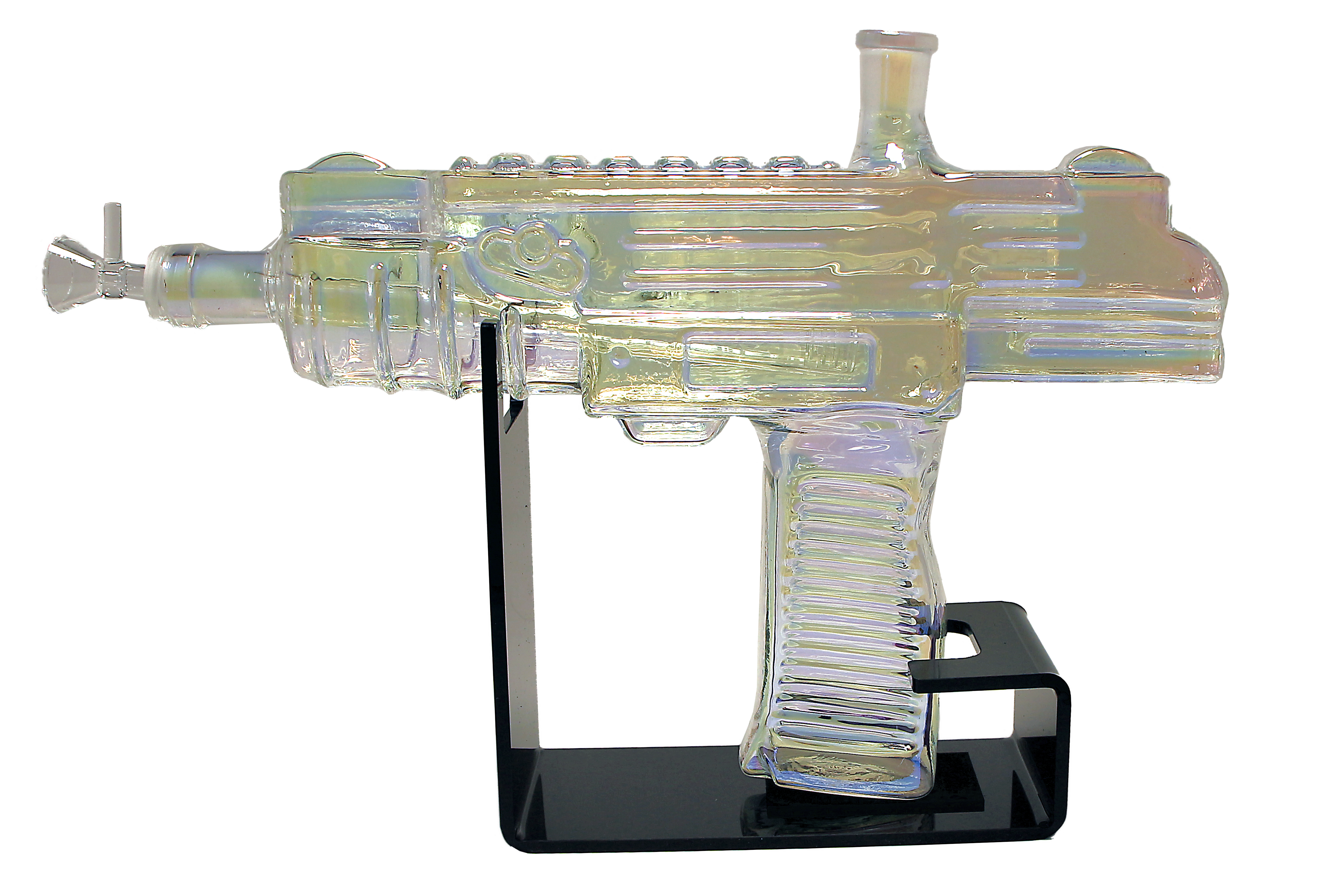 The UZI Glass Water Pipe features a unique design inspired by the iconic UZI firearm. With its realistic details and sturdy construction, this water pipe is sure to impress both seasoned smokers and collectors alike.