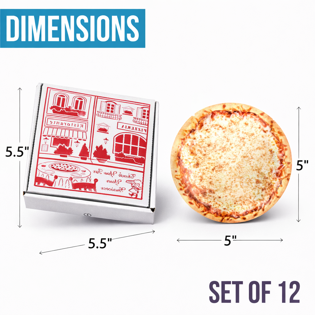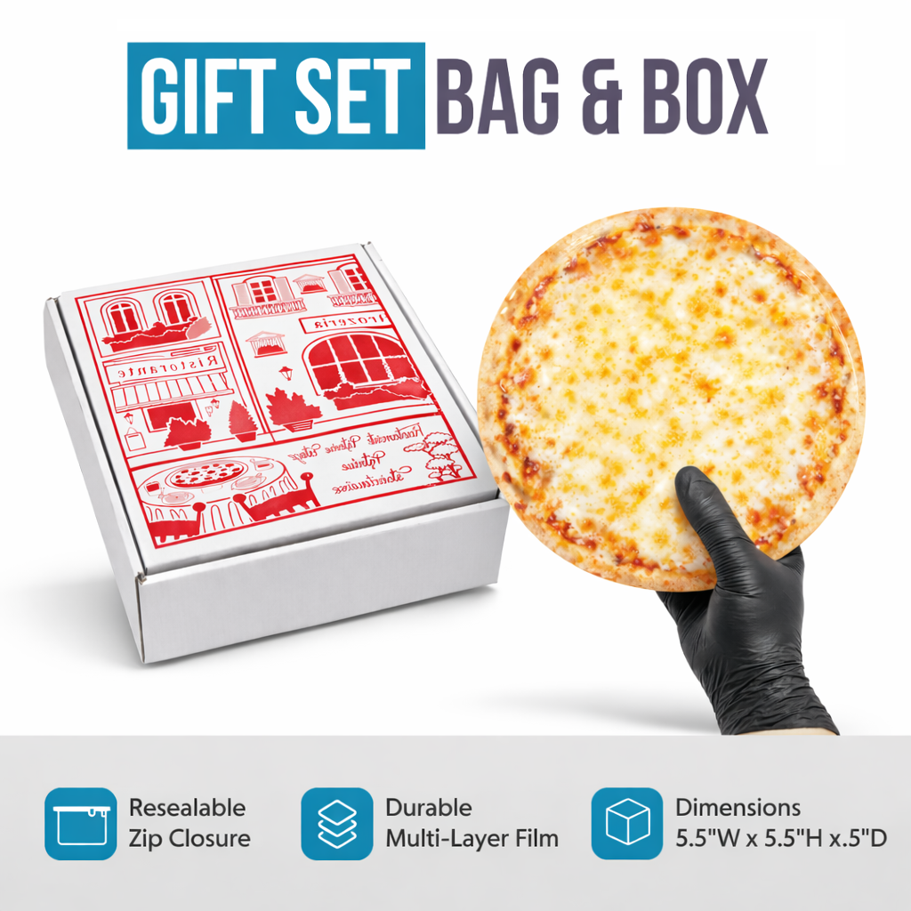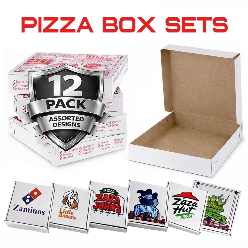 12 Pack – 3.5g Pizza Shaped Mylar Bags & Matching Boxes Set - Assorted Designs